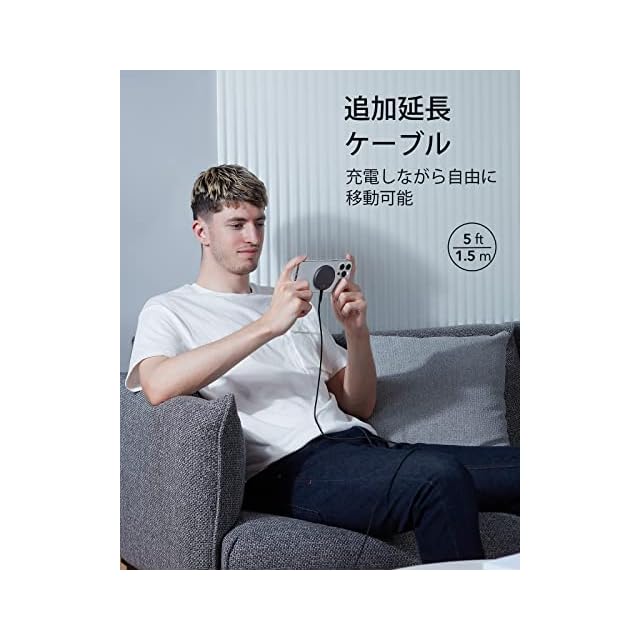 【超ロングケーブル】自由に移動できる1.5mのケーブルで充電中も快適にスマホを使用可能。
