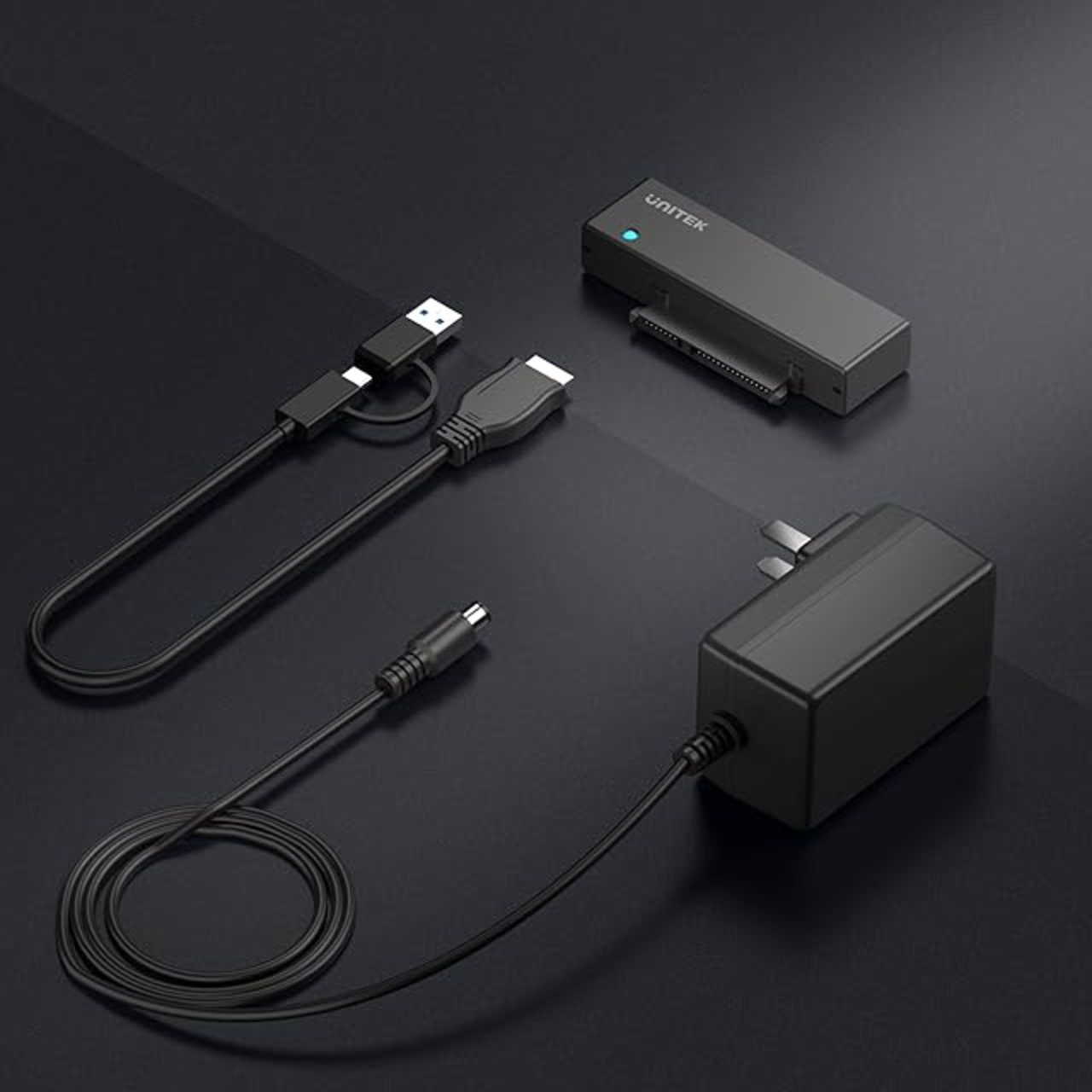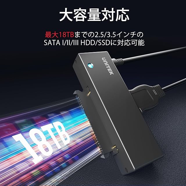 商品名:Unitek SATA USB3.0(USB A+C) 変換ケーブル 2.5 3.5インチ HDD/SSD などのハードライブ とSATA 光学ドライブ に対応 I/II/III 電源アダプタ(12V/2A電源付き)UASP対応 高速転送 線長150cm 最大18TB ファイルコピー テレビ録画 ハードディスク復旧 PSE認証済