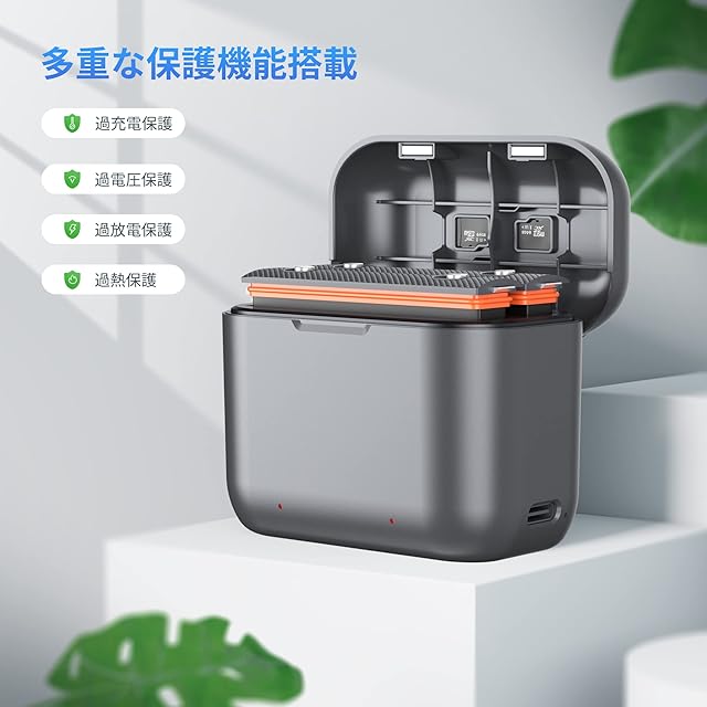 【保護回路】:本インスタ360 x3 アクセサリー製品には過電流保護、過充電防止、過放電防止の保護回路が内蔵されていますので使用機器にダメージを与えることなく安心してご利用いただけます