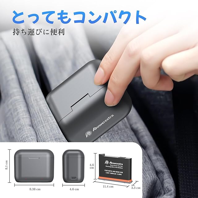 商品名:Insta360 X3 互換バッテリー + 充電器 セット 大容量 予備バッテリー USB充電 2個同時充電可能 カメラ互換用バッテリー 充電器収納ボックス式 急速充電器 (Insta360 X3)