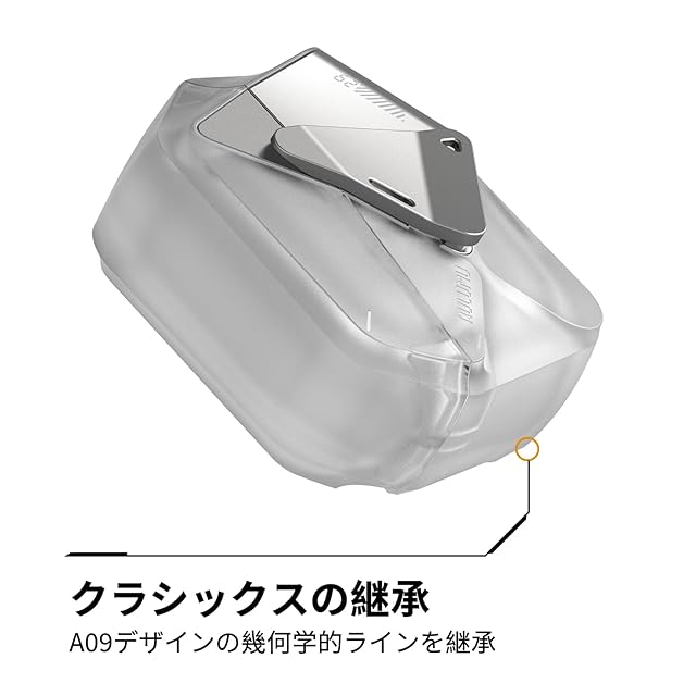 【幾何学デザインの進化】A09のクラシックデザインを再構築し、精密なカーブを施してスリム化。AirPods 4にぴったりフィットし、個性的なデザインを保ちながらも、ポケットにスムーズに収まるスリムなフォルムを実現。