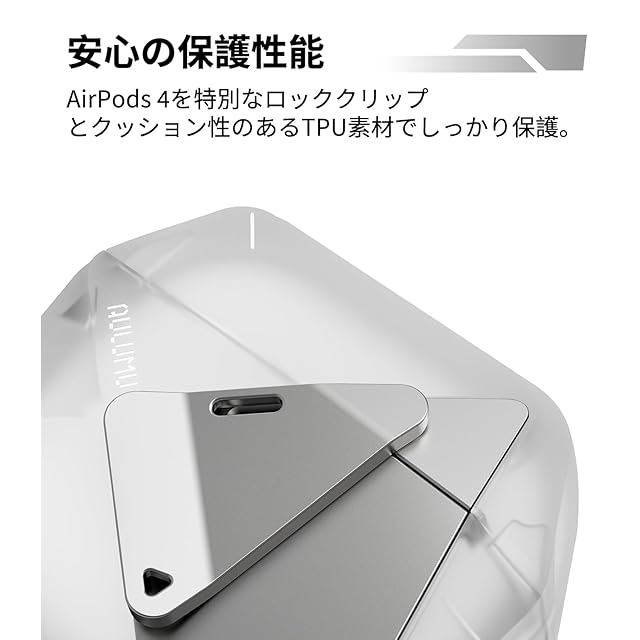 AULUMU A29 AirPods 4 ケース AirPods 第4世代ケース (2024) ジオメトリックデザイン 亜鉛合金ロック 脱着式ナイロンストラップ付き 耐衝撃TPU 強化コーナー保護 半透明ホワイト | TREND DESIGN 家電専門店