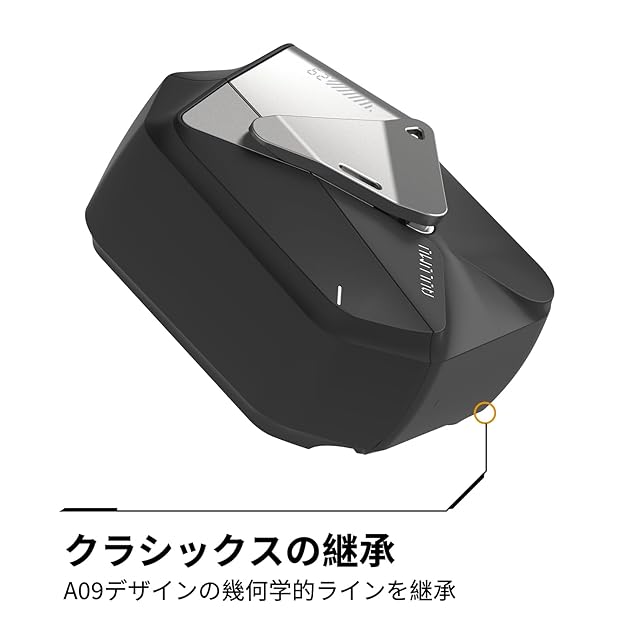 【幾何学デザインの進化】A09のクラシックデザインを再構築し、精密なカーブを施してスリム化。AirPods 4にぴったりフィットし、個性的なデザインを保ちながらも、ポケットにスムーズに収まるスリムなフォルムを実現。