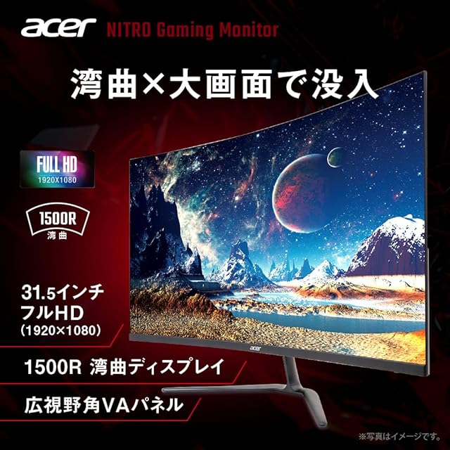 商品名:Acer Nitro 湾曲 ゲーミングモニター 31.5インチ ワイド フルHD 非光沢 広視野角VA 100Hz 1ms(VRB) AMD FreeSync ブラックブースト ブルーライト低減 HDMI 1.4 ミニDSub 15ピン スピーカー・ヘッドフォン端子 VESAマウント対応 ゼロフレームデザイン ED320QRHbmix