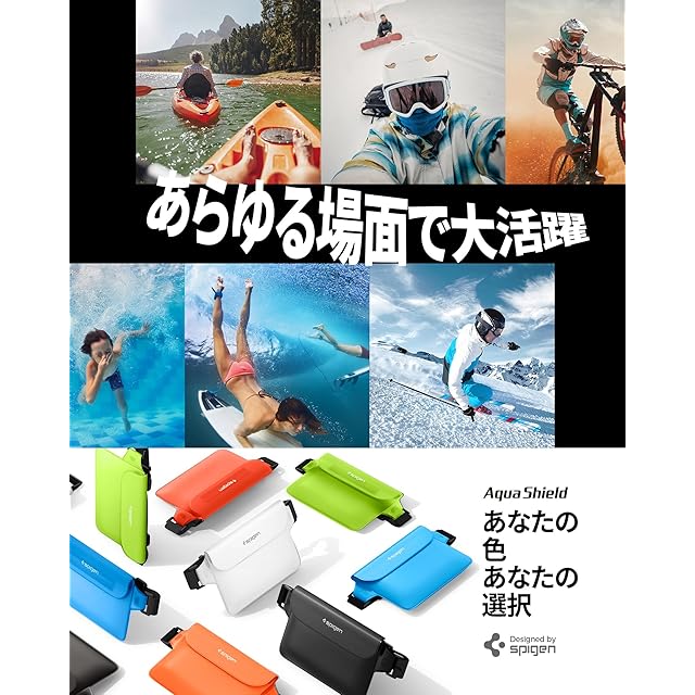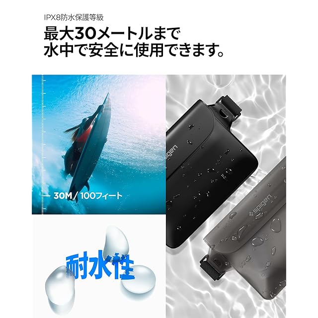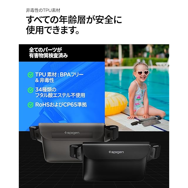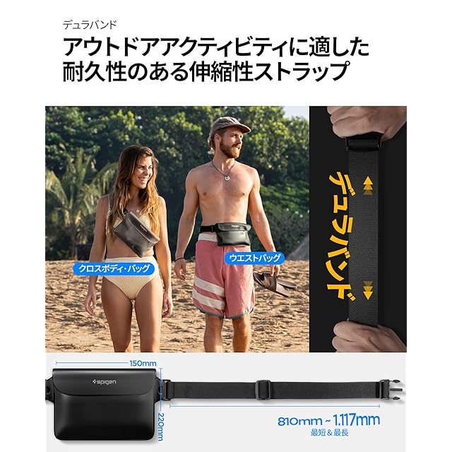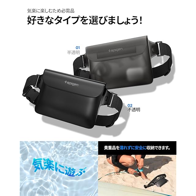 商品名:Spigen 完全防水 ウエストポーチ 2枚セット 小物 IPX8認証 海 プール 川 旅行 アウトドア スマホ収納可能 三重チャック ベルクロ PVC 大容量 防水バッグ A620 AMP04531 (ブラック)