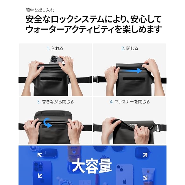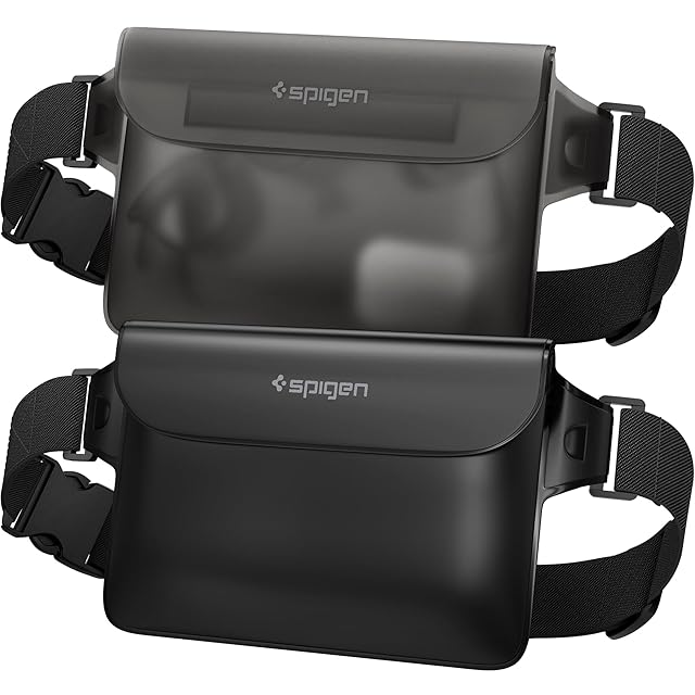 Spigen 完全防水 ウエストポーチ 2枚セット 小物 IPX8認証 海 プール 川 旅行 アウトドア スマホ収納可能 三重チャック ベルクロ PVC 大容量 防水バッグ A620 AMP04531 (ブラック) | TREND DESIGN 家電専門店