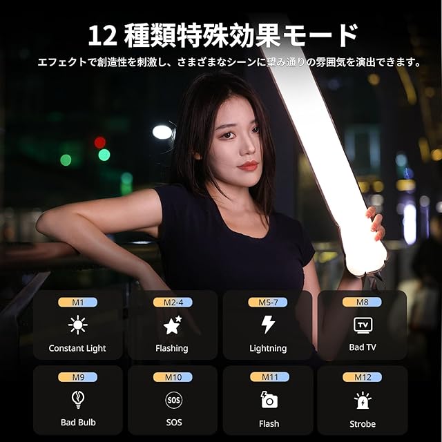 【20W高輝度・色温度2700K~6500K】UA20ビデオライトは、高品質で効率的な2色LEDを使用し、2700k-6500kで暖色と寒色4段階色温度調節できます。明るさは5段階で調整が可能。95+CRIの20Wフルスペクトルランプビーズは、色再現をします。0.96インチのLCDディスプレイ画面に動作状態が表示されます。6つの照明モードにより、動画作成がクリエイティブでユニークになります。