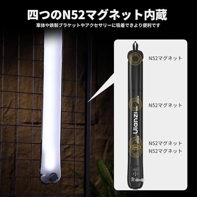 商品名:Ulanzi UA20 20W LEDビデオライト 撮影用ライト チューブライト インフレータブル マグネット付き 色温度2700K~6500K CRI 95+ 2500mAh Type C充電式 高輝度 1/4インチネジ穴 折りたたみ可能 ハンドヘルドライト 膨張するLEDライト 動画撮影/ライブ配信/YouTube/Tiktok等に適用 撮影ライト 軽量 持ち運び便利