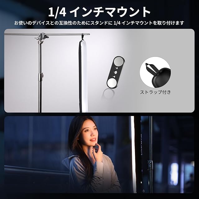 【2024新版エア式ビデオライト】UA20撮影ライトは、吹き飛ばすと膨らみ、空気を抜くと縮むビデオライトです。電動または口で空気を入れて膨らませて、数秒で準備完了。吹き飛ばした後は90cmのバーライトに変身し、製品の重量は256gで、折りたたみでき持ち運びに便利です。フレキシブルなボディな屋内でもアウトドアでも様々な撮影シーンに対応できます。