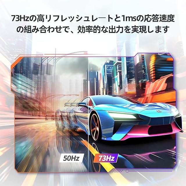 【73Hzの高リフレッシュレート】:DP ケーブル接続時に最大 73Hz のリフレッシュレートを実現。73Hz の高速リフレッシュと 1ms の反応速度を組み合わせ、4K UHD の超高解像度環境下でも、ビデオ視聴やクリエイティブワークにおけるモーションの滑らかさを究極的に追求します。HDMI 60Hz をサポートし、環境に合わせた柔軟な設定が可能です。
