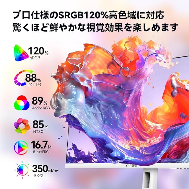 商品名:CUNPU 27インチ White モニター 4K UHD(3840×2160)白 ホワイト 73Hz/60Hz IPS非光沢パネル 120%SRGB 350cd/M2輝度 163PPI/16.7Mカラー表示 VESA対応 写真/ビデオ編集用/オフィス対応 フリッカーセーフ DP×1/HDMI×2ディスプレイ 液晶/PC モニター 超狭額縁 かわいい