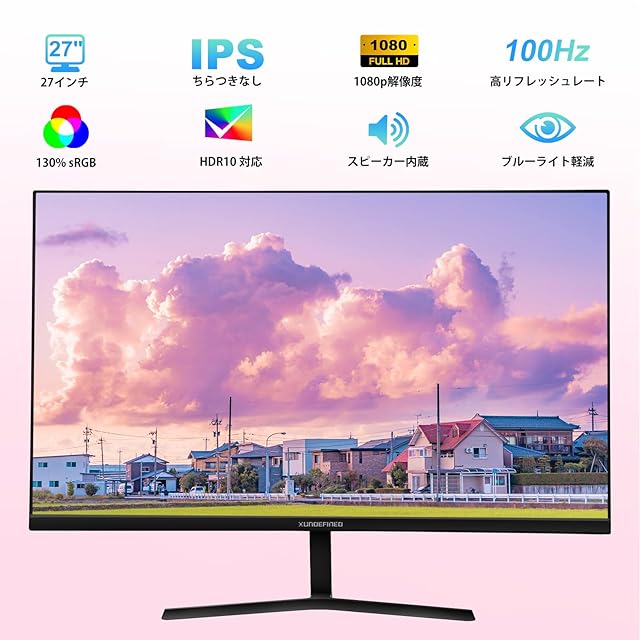 商品名:XUNDEFINED 27インチ モニター 100Hz フルHD(1920×1080) IPSパネル 超薄型ディスプレイ スピーカー内蔵 129%sRGB広色域 Adaptive Sync HDR対応 ブルーライト軽減 フリッカーフリー チルト調整 VESA対応
