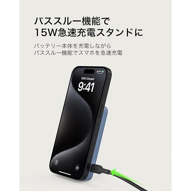 【高速パススルー充電】モバイルバッテリーを充電しながら、ワイヤレスでiPhoneに給電する際は15Wの高速ワイヤレス充電が可能