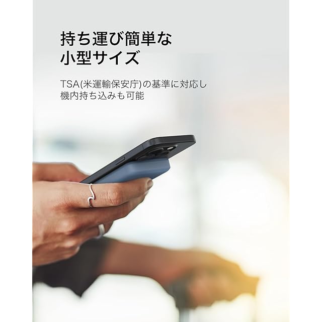 【1円玉より薄い、小型化を追求したミニマムデザイン】Qi2モバイルバッテリーとしても小型で、手のひらサイズ。重量は約140gと軽量でポケットにも収まりどこにでも持ち運べます