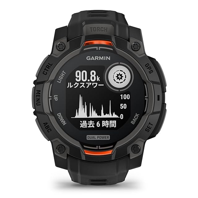 【Dual Power モデル】ソーラー充電により、無限の超ロングバッテリーを実現できるモデルです。アメリカ国防総省による品質基準「MIL-STD-810」に準拠した、どんな状況にも耐えうるタフネスGPSウォッチ。