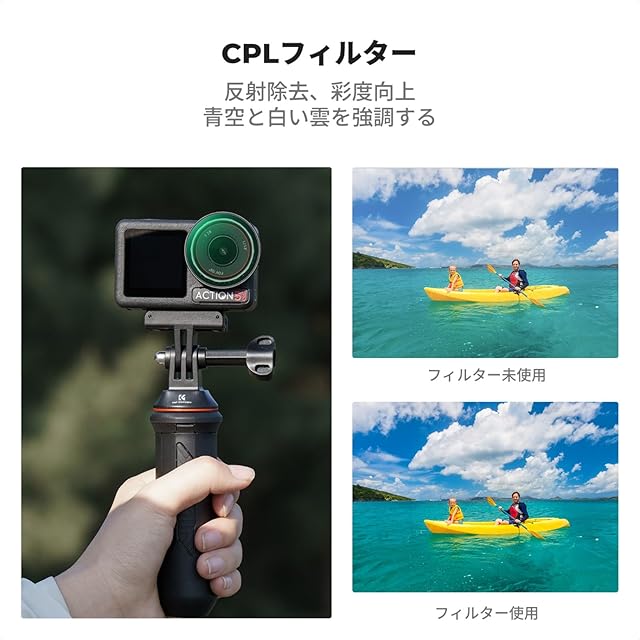 【Osmo Action 5Pro/4/3専用フィルター・撮影の幅を広げる】: CPLフィルター、ND8、ND16、ND32を含むこのセットは、さまざまな撮影条件に対応し、明るい環境でも美しい映像を実現します。このフィルターセットを使えば、あなたの映像作品がさらに魅力的になること間違いなしです。