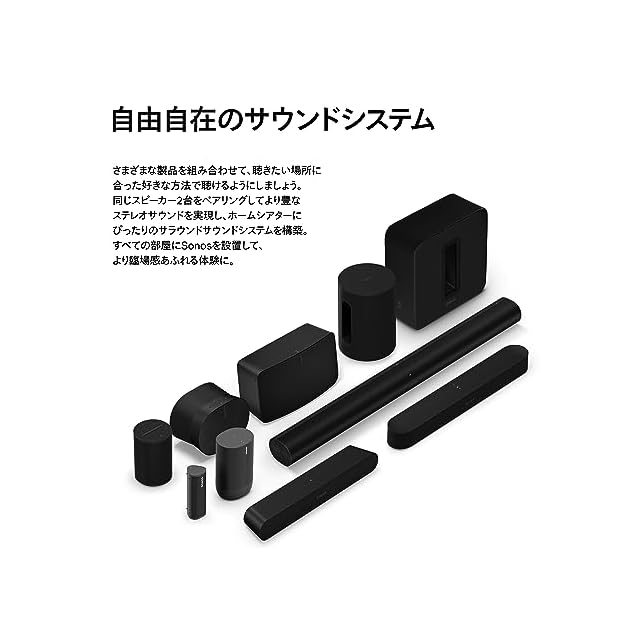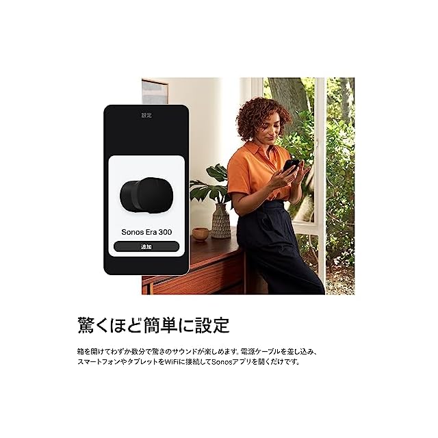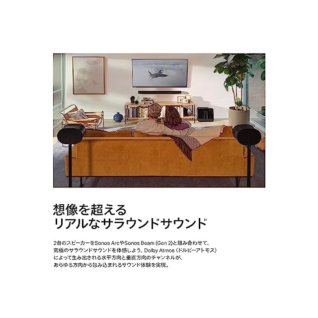【想像を超えるサラウンドサウンド】高度なマルチチャンネル再生を可能にするSonos Era 300をSonos ArcやSonos Beam (Gen 2) と組み合わせれ ば、究極のDolby Atmos(ドルビーアトモス)ホームシアター体験を実現できます。 【音楽界のリーダーたちとの世界的なコラボレーション】Sonosサウンドは、世界の音楽シーンを牽引するアーティストやクリエーターたちとの緻密な 共同作業によって創られています。アーティストがスタジオで意図した「あるべきサウンド」をそのまま体験できるように、精緻なチューニングが施さ れた。それがSonos Era 300です。AndroidとiOSの両方に対応したTrueplayは、Sonosアプリの簡単なタップ操作によって個々に異なるお部屋の 音響特性に合わせて最適な音響補正をおこないます。