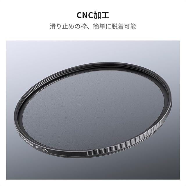 【薄枠&航空アルミ材質】1/8ソフト効果フィルターは精密加工による薄枠設計が採用されているので、広角レンズでもケラレを気にせず使用できる。わずか3.3mm薄枠は航空アルミ製で耐久性がある。