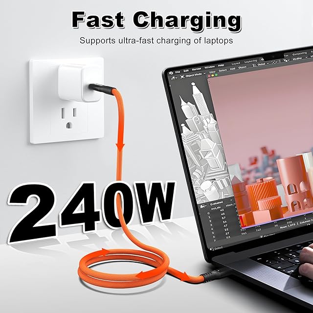 【240Wスマート充電】全デバイス対応:PD3.1規格対応でMacBook Pro 16"(240W)〜スマートフォン(15W)まで自動調整。旅行用モバイルバッテリー接続時も安定給電(※出力は接続機器仕様に依存)