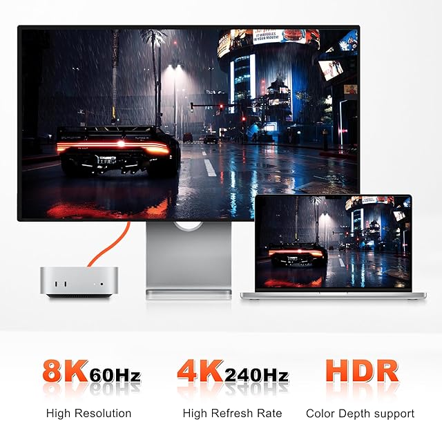 【8K/デュアル4K映像】プロ仕様接続:単一ディスプレイ8K@60Hz/デュアル4K@60Hz出力対応(※DisplayPort Alt Mode必須)。HDR10対応モニターで色彩精度98%を実現