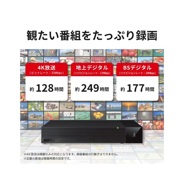 バッファロー TV用外付けハードディスク 2TB SeeQVault/テレビ録画/4K対応 ファンレス静音&コンパクト 日本製 故障予測 みまもり合図 HD-SQS2U3-A/N | TREND DESIGN 家電専門店