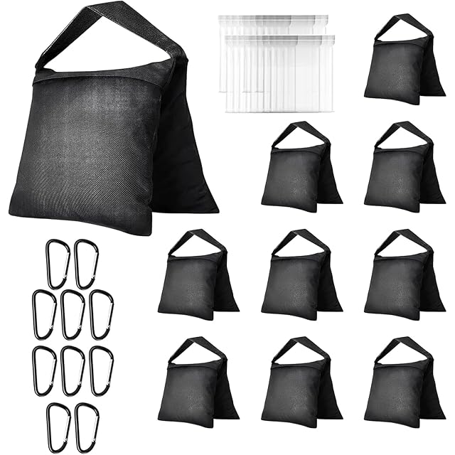EMART サンドバッグスタジオ 砂袋 撮影用 三脚 耐荷重 安定用重し袋 万能 固定 転倒防止 重ね置き可能 ライトスタンド用砂袋 固定用重量袋 強固 透明なPVCバッグとクリップ付属 三脚アクセサリー 撮影 安定 黒- 10個 | TREND DESIGN 家電専門店