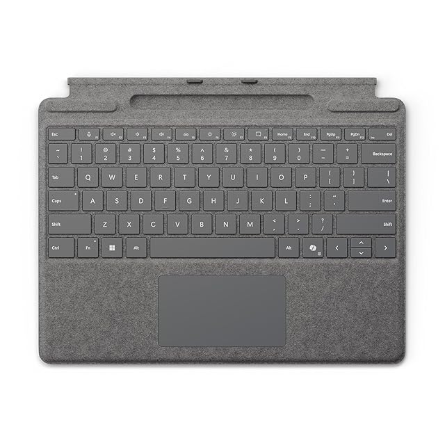 日本語キーボードレイアウト※画像は英語キーボードですが、商品は日本語キーボードとなります。 大型ガラス製トラックパッドと、AI を思いのままに活用できる新しい Copilot キー を搭載した高級感のある完璧なキーボードで、ワンランク上の汎用性を実現します。内蔵の Surface スリム ペン トレイ内で、安全かつ簡単に充電できます。カラー バリエーションも豊富です。