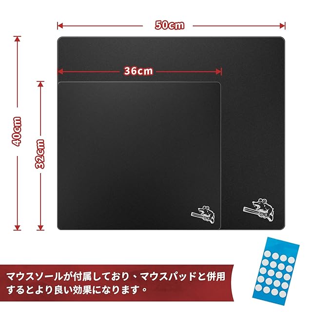 【基本仕様】材質:特殊強化ガラス、カラー:ブラック/ホワイト、サイズ:320mm×360mm/400mm×500mm(使用環境やマウスの使用習慣に合わせてお選びください)、厚さ:3mm.
