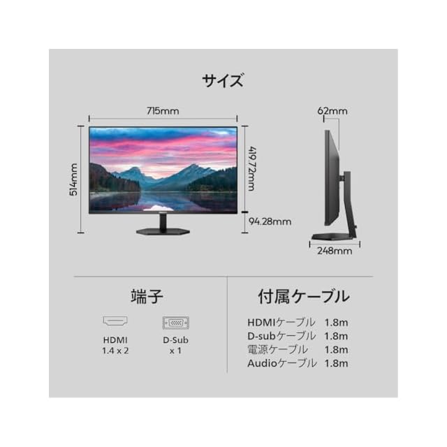 商品名:PHILIPS モニターディスプレイ 32E1N3100LA/11 (31.5インチ/VA/FHD/5年/D-Sub(VGA)x1,HDMI1.4x2/チルト/フレームレス/スピーカー)