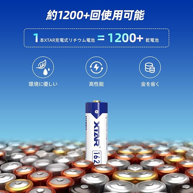 XTAR 1.5V 単4リチウム電池 1620mWh 高容量AAA充電池