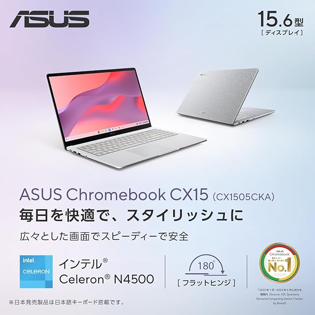 ASUS Chromebook CX15 CX1505CKA 15.6インチ インテル Celeron N4500 メモリ8GB eMMC64GB 重量1.59kg 日本語キーボード ゼロタッチ登録対応 Wi-Fi 6 ピュアグレー CX1505CKA-S70141