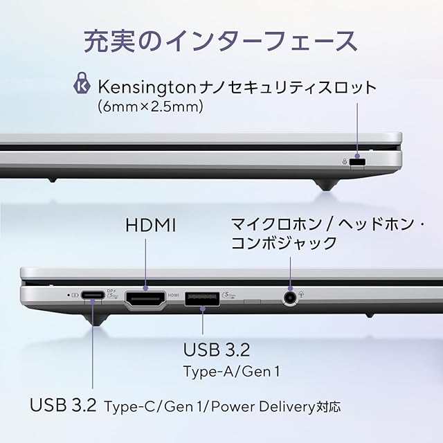 【USBポート】USB3.2 (Type-C/Gen1/Power Delivery対応)×1 ※データ転送と映像出力、本機への給電をサポート、USB3.2 (Type-A/Gen1) ×1【ディスプレイ出力】HDMI×1、Type-C×1【オーディオ】ステレオスピーカー内蔵 (2W×2)、アレイマイク内蔵、マイクロホン/ヘッドホン・コンボジャック×1【通信機能】無線:IEEE802.11a/b/g/n/ac/ax (Wi-Fi 6), Bluetooth 5.3