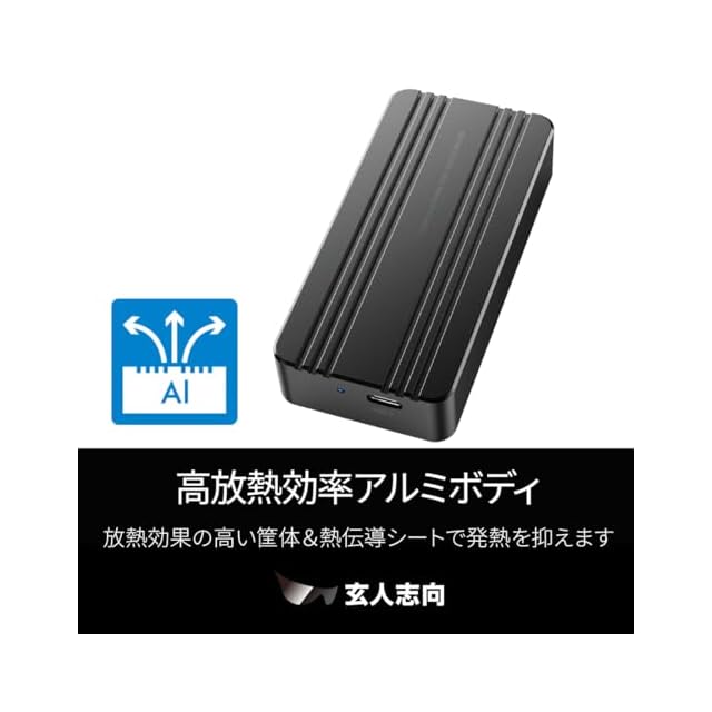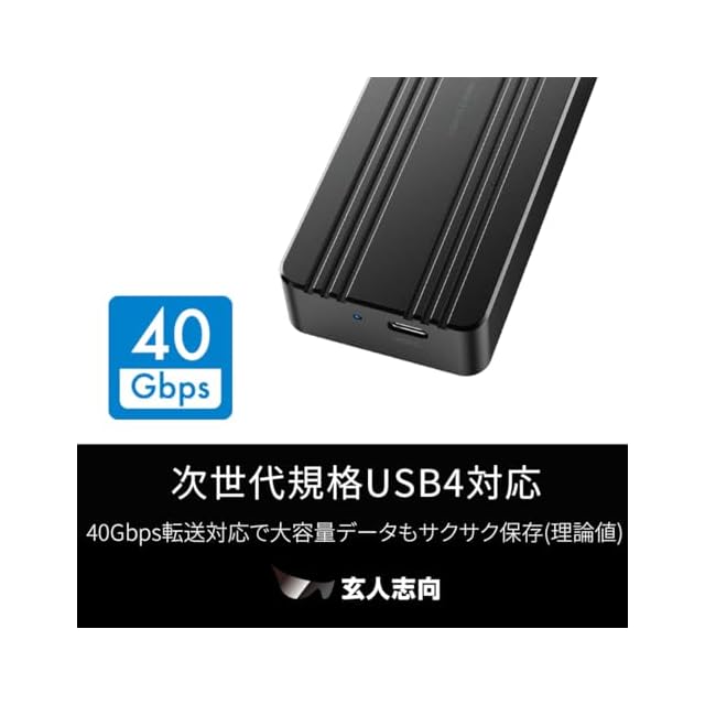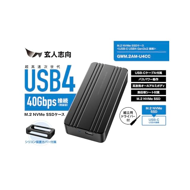 商品名:玄人志向 M.2 NVMe SSD ケース USB-C USB4 Gen 3 x2 ( 40Gbps ) 接続 SSD Type ( 2280/2260/2242/2230 ) 対応 GWM.2AM-U4CC