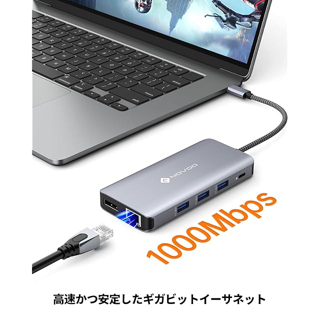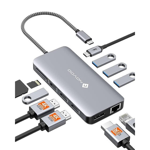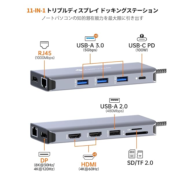 商品名:USB C ドッキングステーション 4K トリプルディスプレイ 11-in-1 NOVOO デュアル 4K@60Hz USB C HDMI ハブ【DP/2 HDMI/4 USB/PD 100W急速充電/SD/TF/イーサネット】