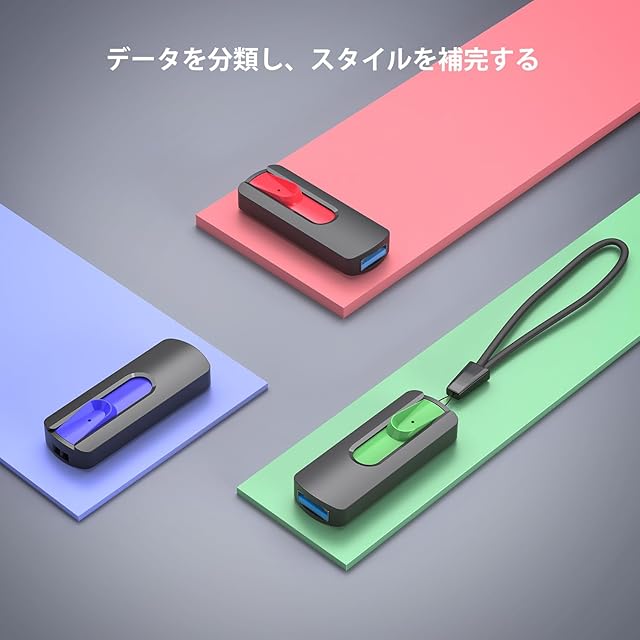プラグアンドプレイ: ソフトウェアをインストールする必要はありません。メモリスティックをコンピュータ、ノートパソコンなどのUSB対応デバイスのポートに差し込むだけで、データストレージや伝送を開始できます。 親指の形状と滑り止めのスライドスイッチは、持ちやすくプラグを差し込むのに便利です。