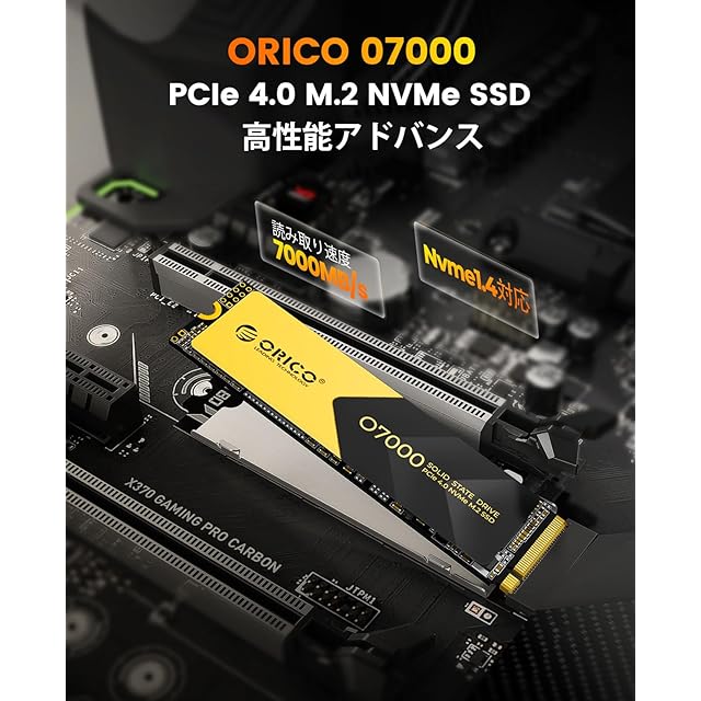 商品名:ORICO O7000 512GB NVMe SSD、ヒートシンク付き、 SLCキャッシ 3D QLC NAND NVMe PCIe4.0 M.2 SSD R:7000MB/s W:4700MB/s メーカー5年