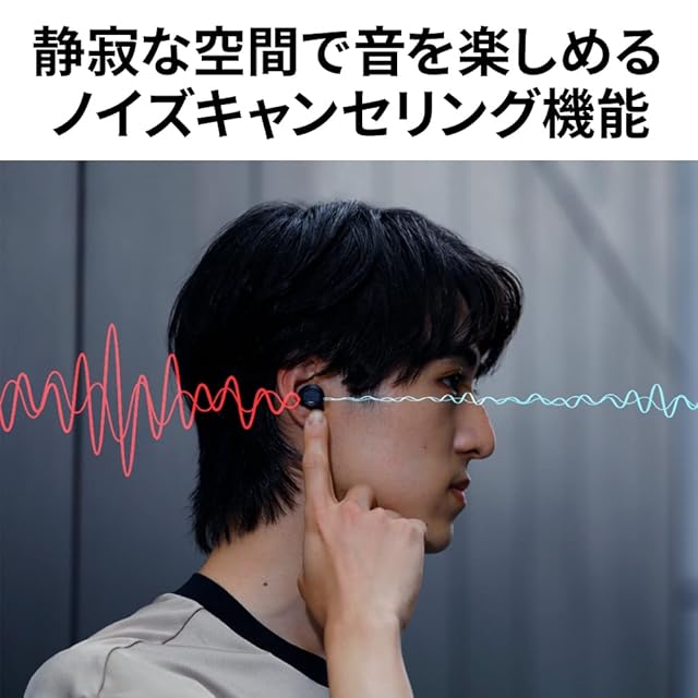 【静寂の中で重低音を楽しめるノイズキャンセリング機能】内蔵マイクで集音した周囲のノイズを打ち消す信号を高精度に生成することでノイズを低減。周囲の音が気になる環境でも、音楽をストレスなく楽しむことができます。さらに、ノイズキャンセリングの効果を高めるために、やわらかい素材を採用し、遮音性に優れたイヤーピースを採用。アクティブノイズキャンセリングと新開発イヤーピースの相乗効果により、高い遮音性を実現。