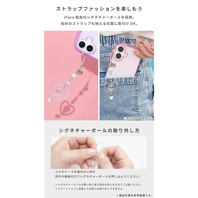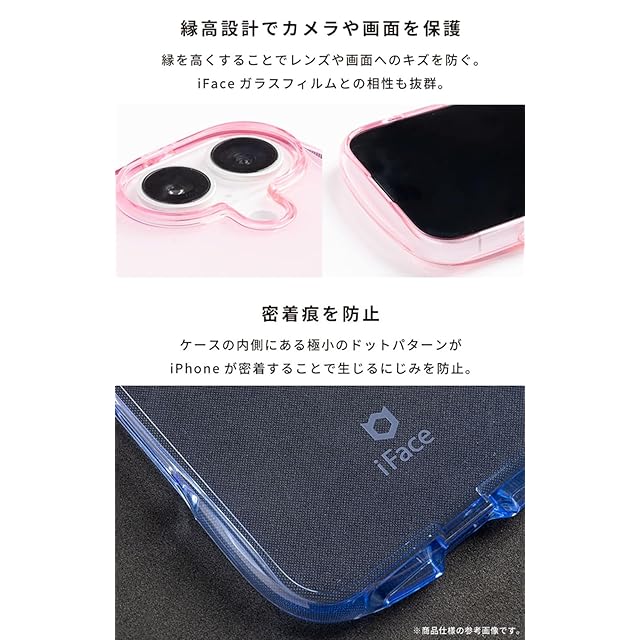 クリアな背面に、シールや写真を入れてカスタマイズが可能 / 手にしっかりフィットする「くびれ」形状で持ちやすさ抜群 / 弾力のあるTPUで、端末をしっかり保護 / 画面とカメラを守る、フチ高設計 / ドット加工で密着痕を防ぎ、見た目を美しく保つ / サイドホールもしっかり対応。カメラコントロールもスムーズに※カメラコントロール機能がない機種は仕様が異なります。 / 選べる2カ所のストラップホール / シグネチャーボール搭載でストラップの付け方が広がる / iFaceストラップホルダー専用設計でショルダーストラップの使いやすさアップ ※ストラップホルダーを併用する場合は、iFaceから発売している製品をご使用ください。類似品ではiFaceケースと併用の使用感をしかねるため、ご注意ください。 / iFaceスマホリング、iFace画面保護シートとの併用も可能※iFaceスマホリングと併用する際には一日ほど置くとしっかり貼り付きます。