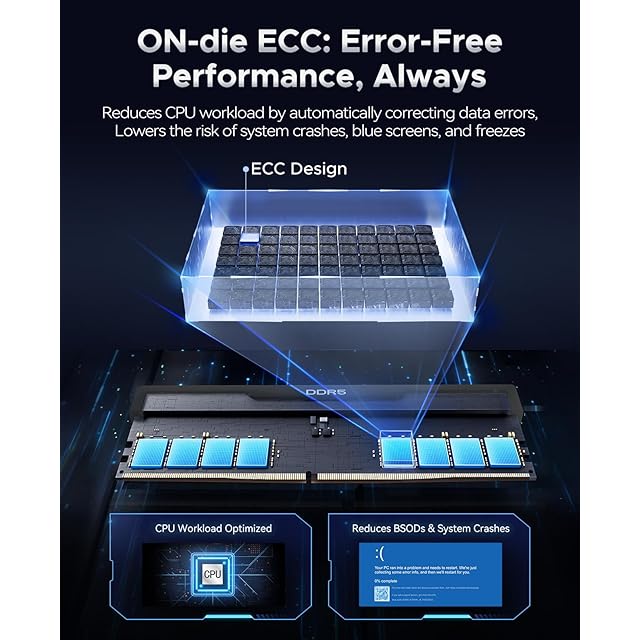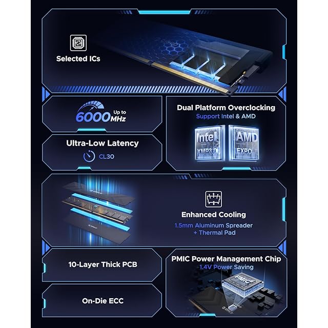 【オンダイECCエラー修正機能】厳選された高性能ICチップとオンダイECC技術により、リアルタイムでエラーを自動修正。システムの安定性とデータの整合性を保護し、オーバークロックやゲーミング環境に最適です。
