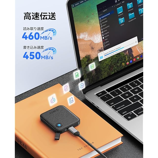 【高速データ転送】最大転送速度は460MB/sで、5GBの2K画質ゲーム動画も残容量が70%以上の場合、1分以内に転送完了します。写真やビデオの共有が高速化され、待機時間が短縮され、より快適に作業ができます。
