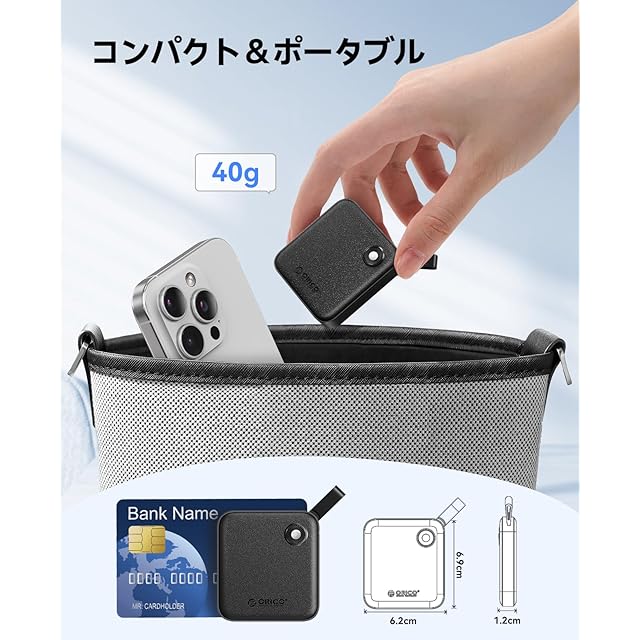 【コンパクトで超軽量なデザイン】わずか40g、サイズは6.2×6.9×1.3cmと非常に軽量でコンパクト。ポケットに収まるコンパクトサイズ、ゴムストラップ付きで紛失しにくいし、持ち運びに便利です。外出先でも手軽に使用できます。