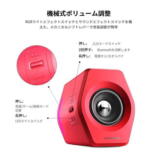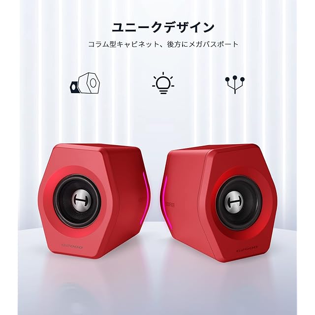 Edifier Hecate ゲーミングスピーカー G2000 16W出力 Bluetooth 4.2 フルレンジスピーカー USB/3.5mm RGBライト付き レッド ED-G2000-RD