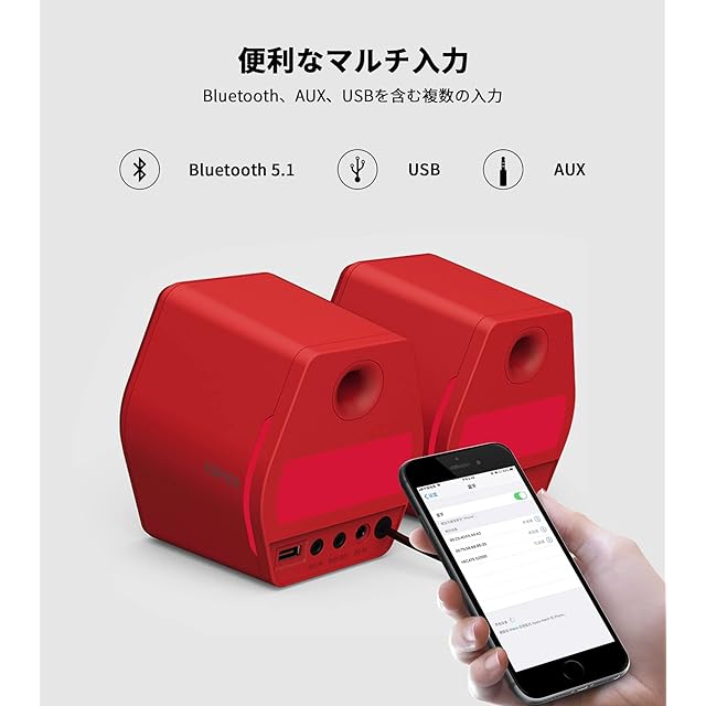 商品名:「EDIFIER直営店」Edifier G2000 ゲーミング スピーカー パソコン用 Bluetooth5.1 32W Hi-Fi音質 有線 Bluetooth/USB/AUX接続 PC対応 LEDライド付き 小型 2台一組