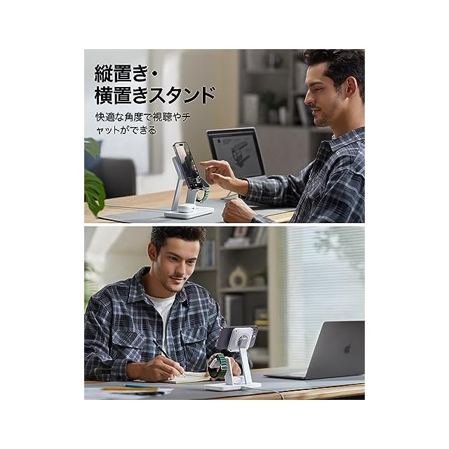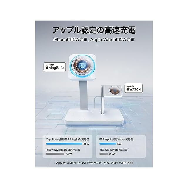【公式・高速充電】Apple認定の15W MagSafe iPhone充電と5W Apple Watch充電に対応し、より高速で安全な方法で必要なデバイスを充電できます。