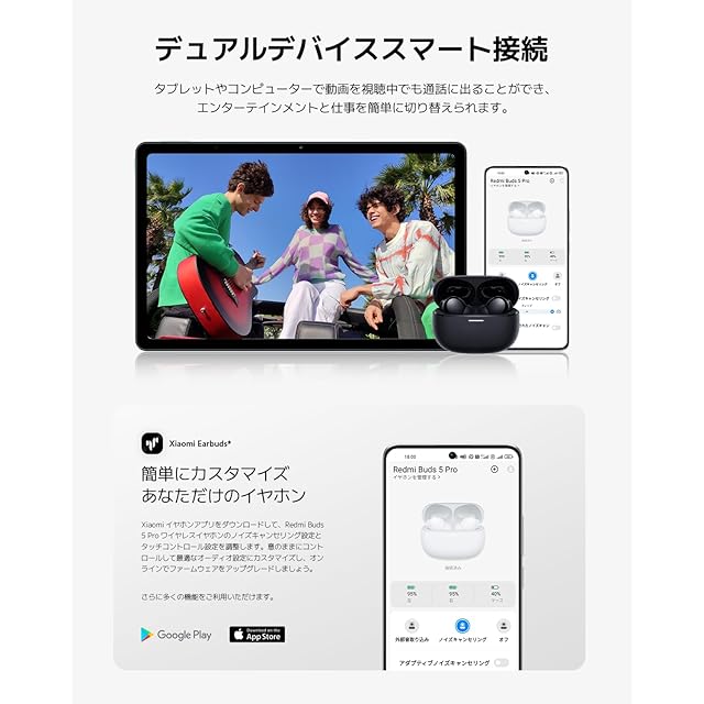 【1日中、究極のパフォーマンス体験】5分の充電で2時間音楽を楽しめます。充電ケースを使用すると最大38時間の長時間バッテリー駆動が可能に。Google Fastペア対応、デュアルデバイス接続ができ、簡単に切り替えできます。Xiaomiイヤフォンアプリ(Xiaomi EarBuds)に対応し、快適な音楽体験を実現します。