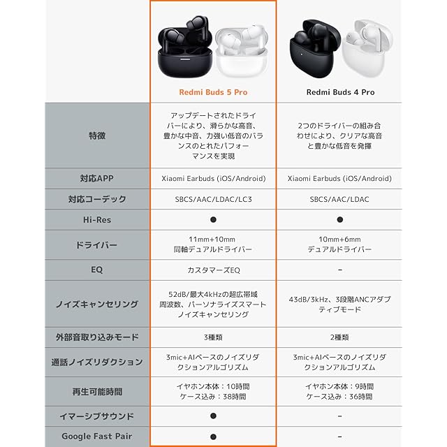 シャオミ(Xiaomi) ワイヤレスイヤホン Redmi Buds 5 Pro 52dBまでアクティブノイズキャンセル イマーシブサウンド 最大38時間音楽再生 Google Fast Pair カスタムEQモード SBC/AAC / LC3 / LDAC 対応 iPhone&Android対応 ホワイト | TREND DESIGN 家電専門店