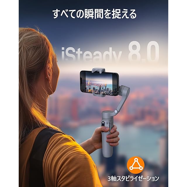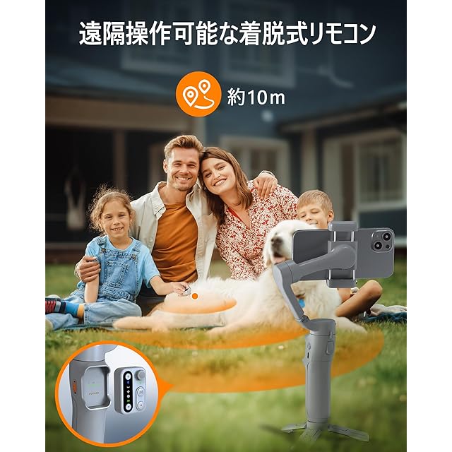 【脱着式リモコン付き】hohem X3 SE にはBluetoothリモコンが付いており、iPhoneやAndroid端末のネイティブカメラアプリコントロールに対応しています。シャッターコントロールやジンバルの角度調整など、遠くからでも簡単に撮影することができます。常にジンバルを手に持つ必要がないので、両手を解放できます。一人旅で写真を撮る時やパーティーの集合写真を撮るのに便利です。