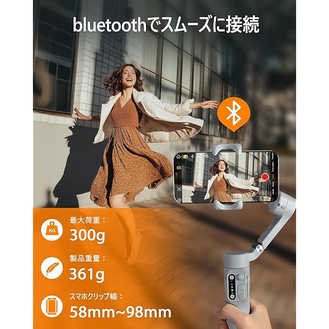 商品名:hohem X3 SE ジンバル 3軸スマホジンバル 着脱式リモコン&外部三脚付 11時間駆動 専用アプリで顔追跡 ジェスチャー操作 美顔 手ブレ補正 スタビライザー 折りたたみ式&軽量 Android&iPhone用ジンバル 日本語対応アプリ グレー