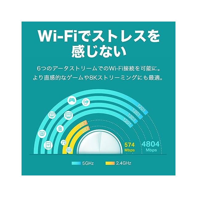 [特徴] WiFi6対応。最先端メッシュ技術で広い場所もWi-Fiが途切れにくい環境を構築。4804 + 574Mbps、3ユニットタイプ。
