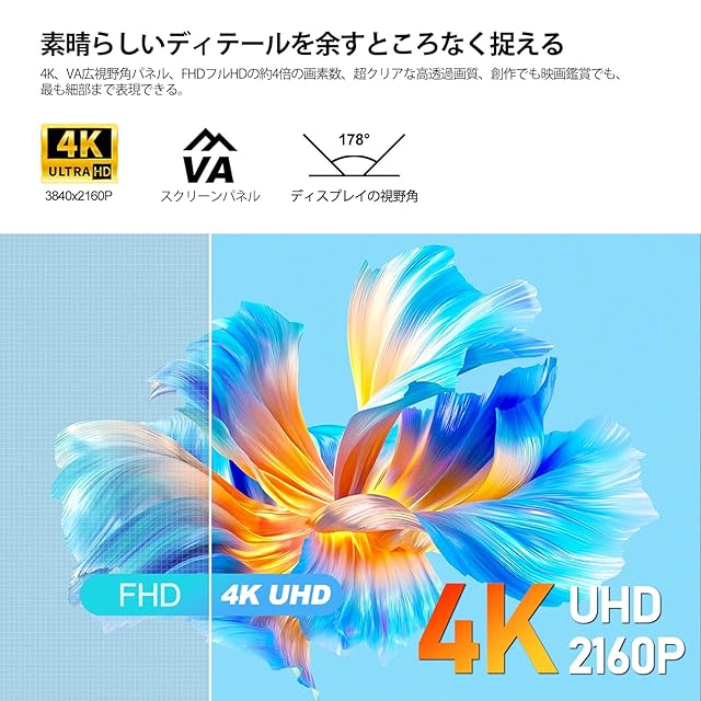 解像度3840x2160の32インチ・ディスプレイは、フルHD(1920x1080)の4倍の解像度であり、画像の細部を完全に保持した高品位な画質と高精細な画像を可能にする。 画像を閲覧しても、テキストを読んでも、クリアで、長時間見ていても疲れません。